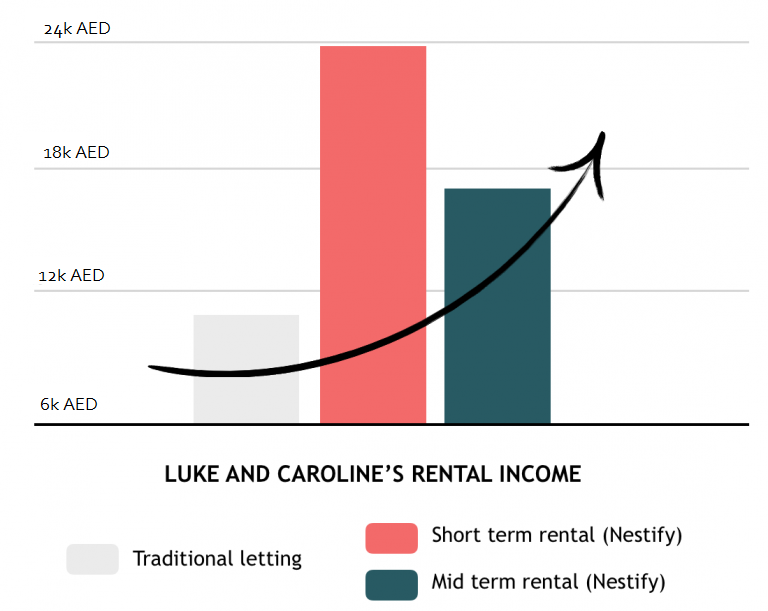 After doing a bit of research, they found that a traditional rental would not be enough to cover their mortgage. Their mortgage is approx. AED8,925pcm, and the value of their property on the long-let market is AED8,682pcm.